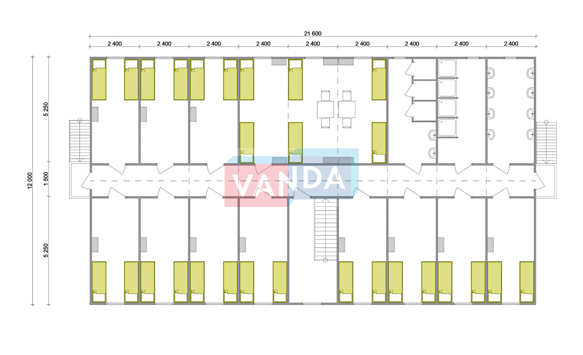 Проект общежития из блок контейнеров 12x21,6 Панели МДФ